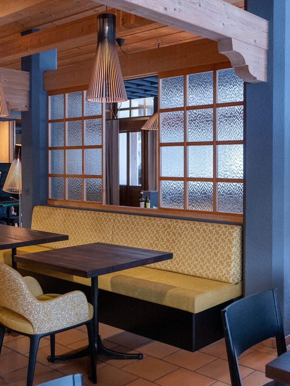 Für das Hotel Krone in Lenk im Simmental durften wir wertige Möbel und maßgefertigte Sitzbänke realisieren.