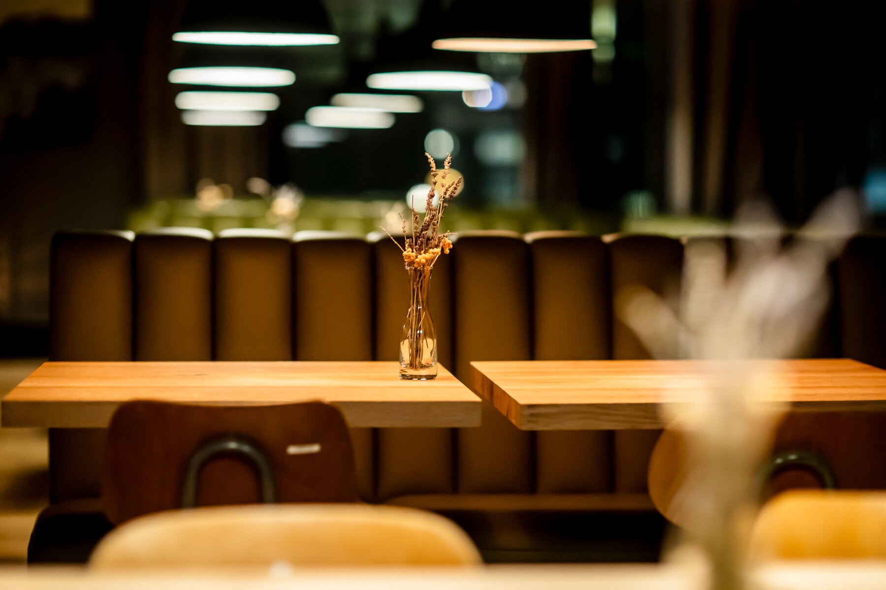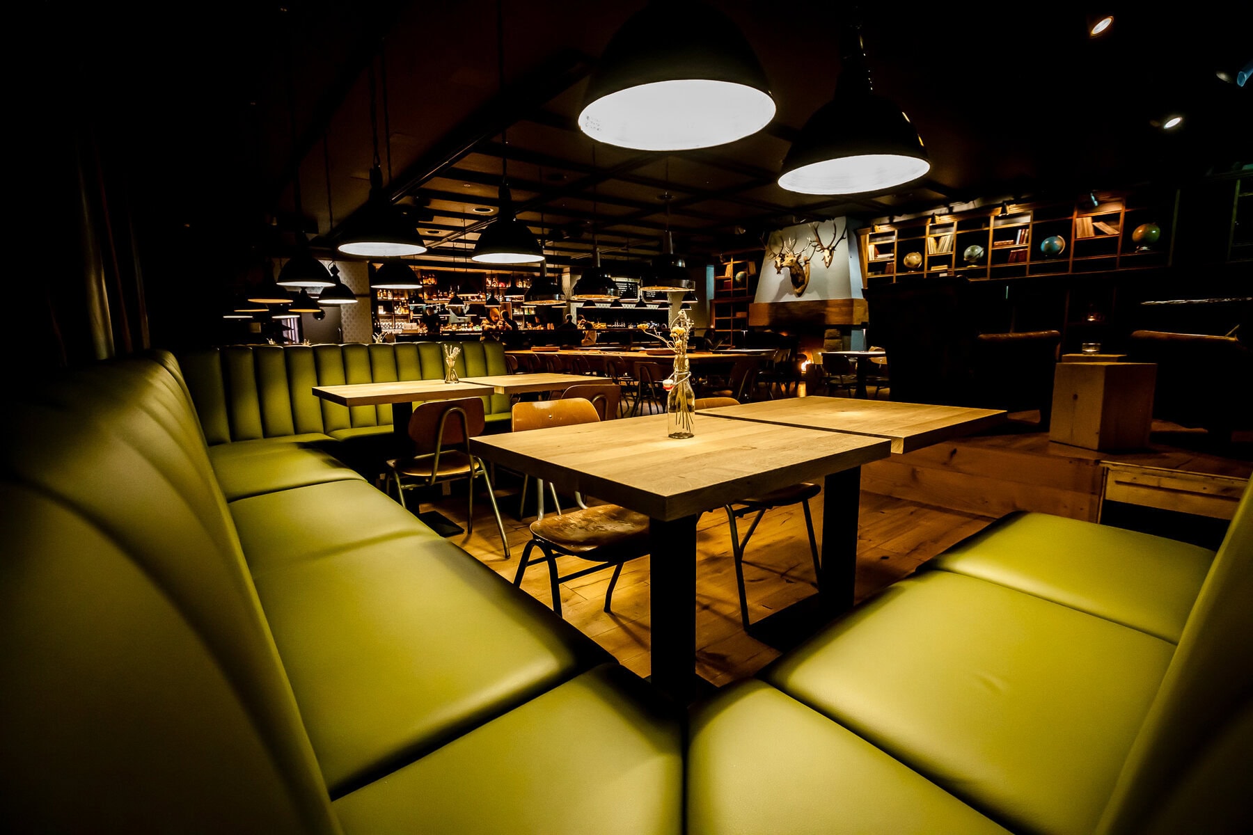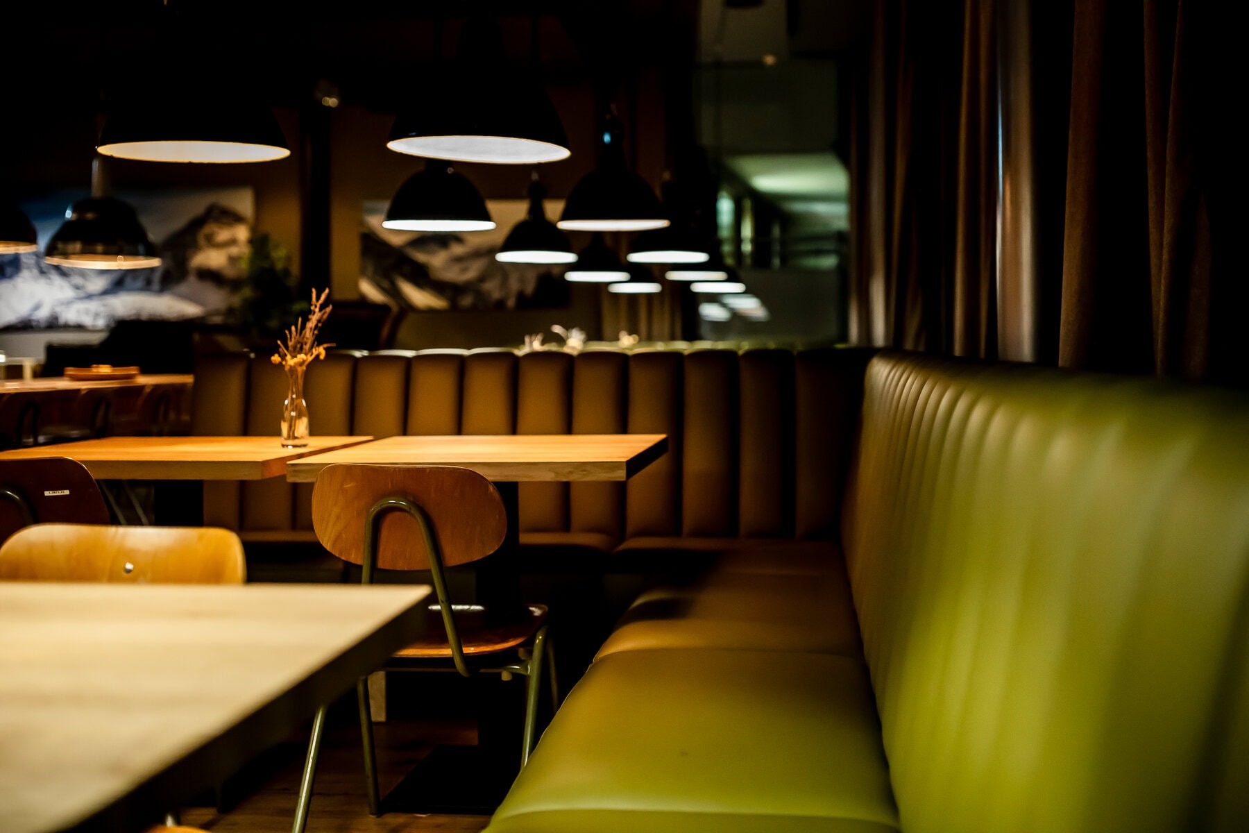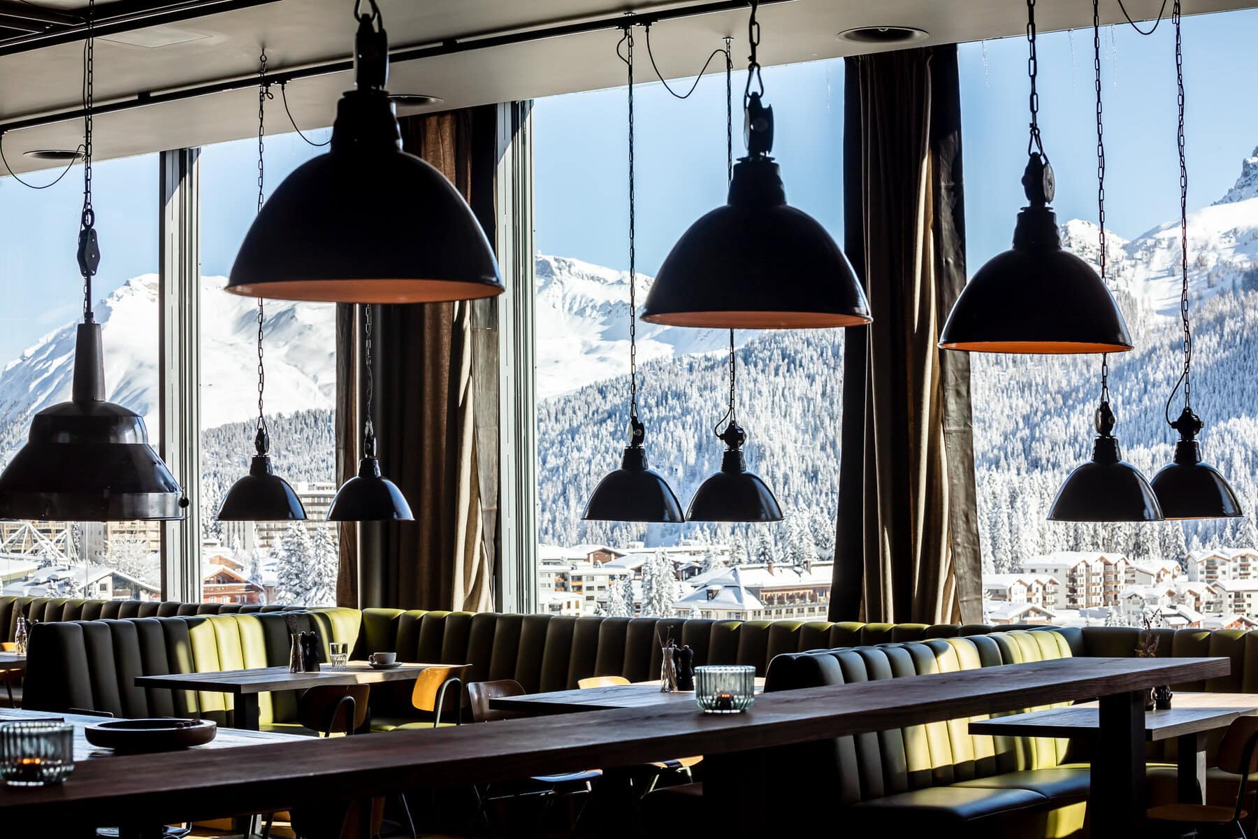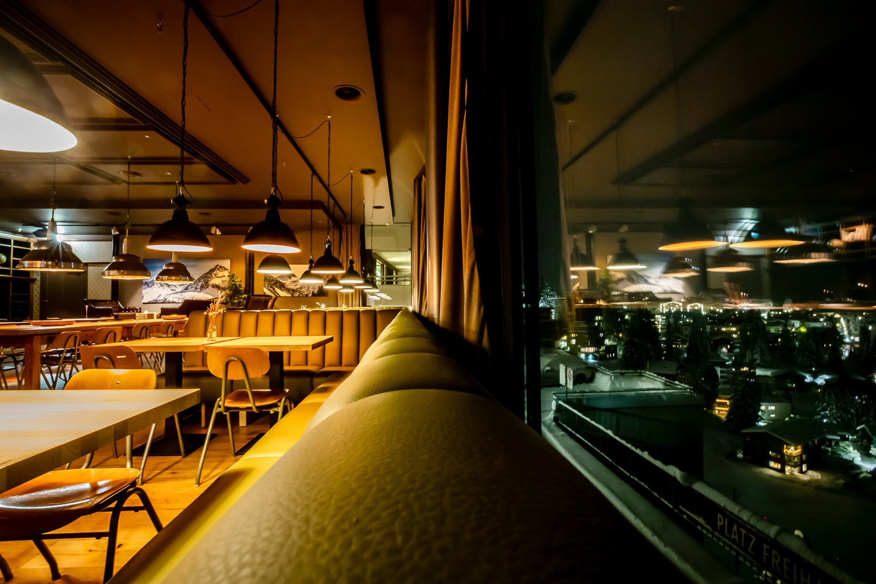 In unserer Manufaktur gefertigte Vollpolster-Sitzbänke bringen Komfort und Eleganz in die Panorama Bar des Kursaals Arosa. Hochwertiges Leder und präzise Verarbeitung sorgen für langlebige Qualität.