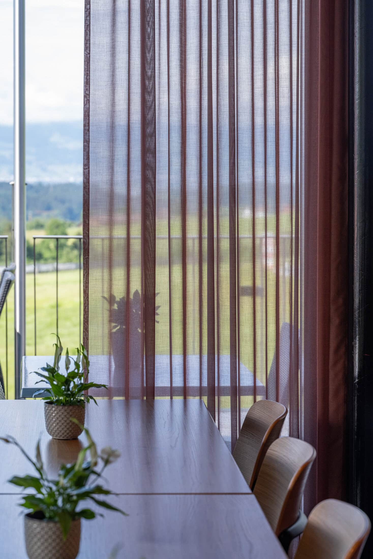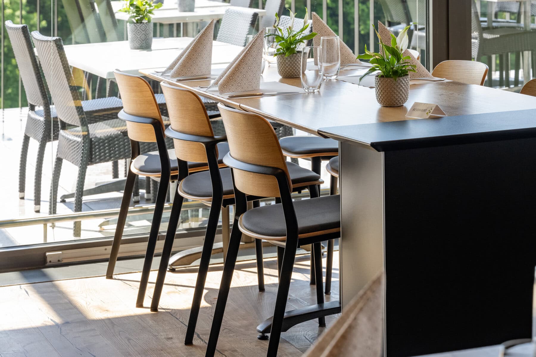 Die Innenräume laden mit warmem Ambiente, harmonischer Einrichtung und liebevollen Details zum Verweilen ein. Der Blick ins Grüne, das Holz als prägendes Gestaltungselement und eine behagliche Beleuchtung sorgen dafür, dass Sie zur Ruhe kommen und sich zuhause fühlen. Wer den Tag gerne draußen ausklingen lässt, ist auf unserer sonnigen Terrasse bestens aufgehoben.